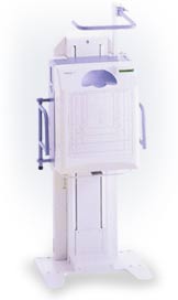 REGIUS 370 is designed with patient care in mind. This is the reason for its graceful design. In addition, considering the situation where the wheel-chaired patient needs to be X-rayed a knee-detector switch is provided. This detector bar is extended through to the edge of the side panel so that it detects without failure.